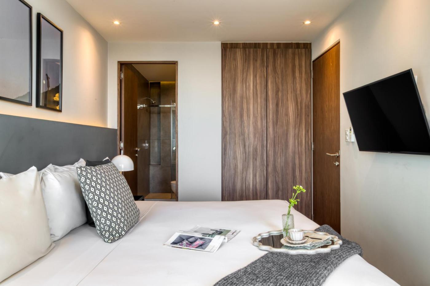 A fully equipped kitchenette with a microwave, a toaster and dining area is included in the air-conditioned units.units are equipped with a coffee machine, a private bathroom and free WiFi, while selected rooms are fitted with a balcony and some have city views. At the aparthotel, the units are equipped with a wardrobe and a TV.